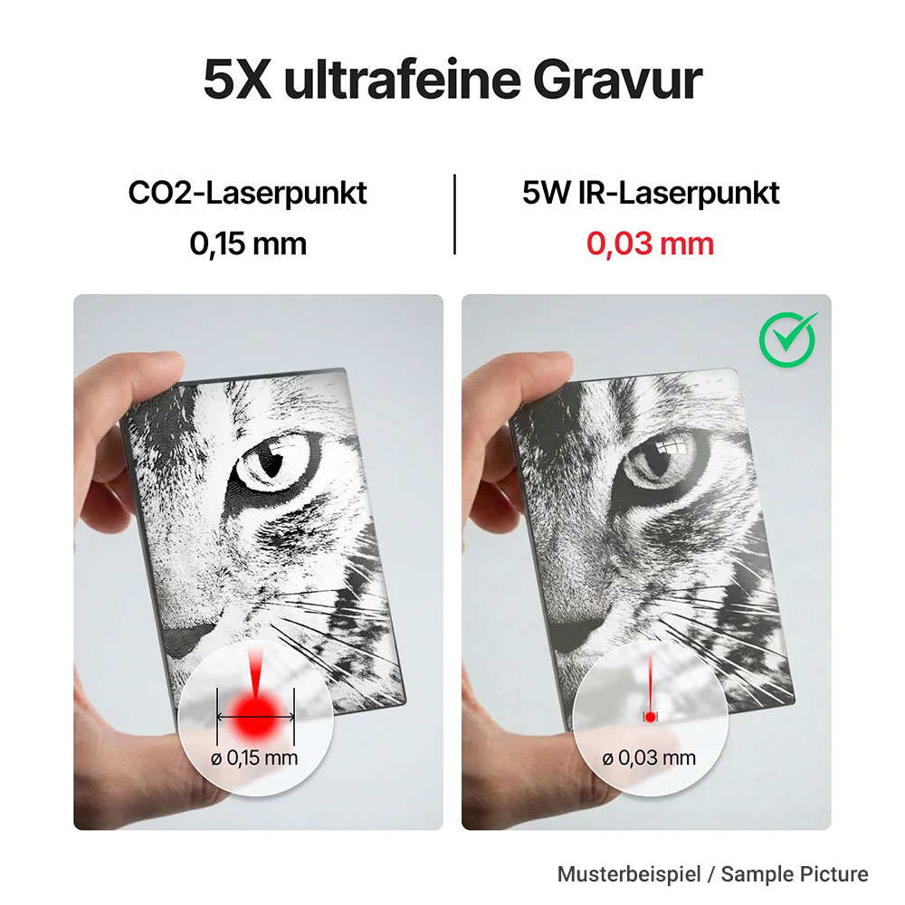✅ Extrem feine Gravuren (≥ 0,03 mm)